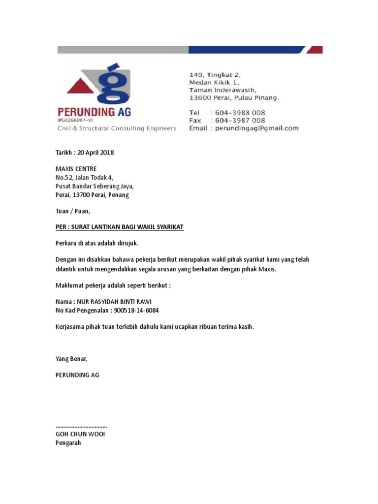 4 4a 2 surat pelantikan bagi wakil per surat pelantikan bagi wakil syarikat merujuk kepada perkara diatas pihak. Surat lantikan wakil syarikat untuk berurusan dengan myeg. Contextual translation of surat wakil syarikat into english. Adakah anda pemilik syarikat yang tidak mempunyai masa untuk mengambil borang sebutharga di premis kerajaan? Pengesahan surat kuasa wakil 3.